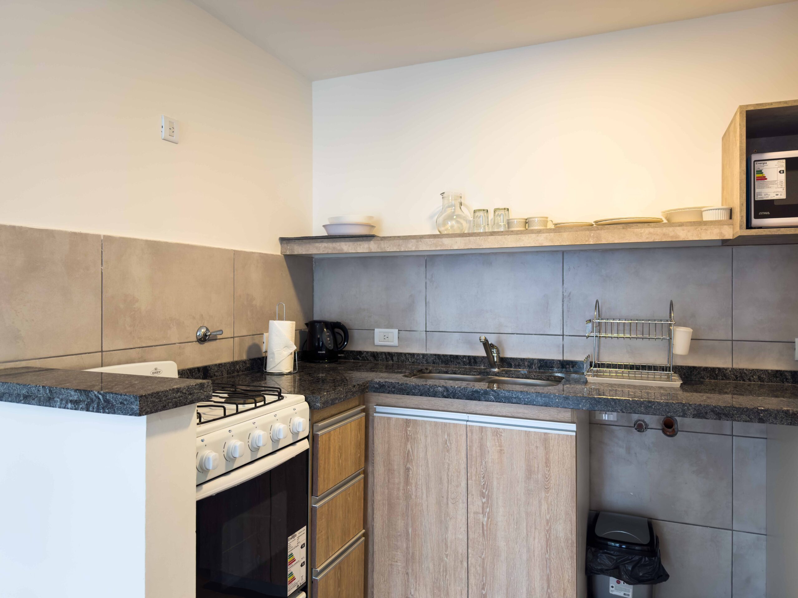 * Cocina semi integrada (con bajo mesada y artefacto de cocina). Además un estante en altura.
